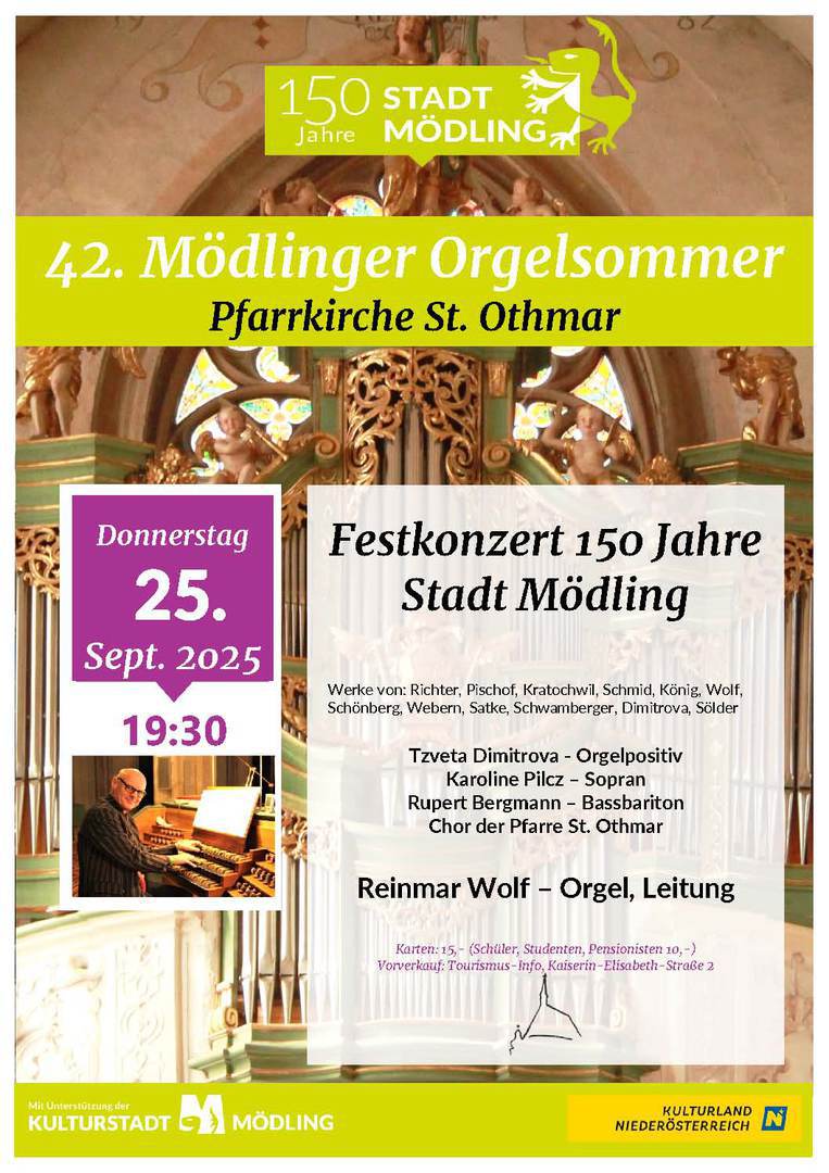Orgelweihe in Pilgersdorf, kleines Orgelkonzert mit Reinmar Wolf und dem Gemischten Chor Pilgersdorf unter Elisabeth Landler. Orgel: Content Celeste 236, Resonatoren und Verstärker: Kienle, Tischler-Arbeiten und zusätzliche Resonatoren: Walter Schermann.